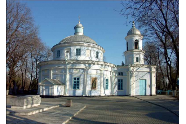Несмотря на то, что в проекте Бернардацци (архитектора этого храма) колокольня не была предусмотрена, в строение она вписалась. Изначально, в 1815 году, была построена только основная часть круглой формы для молитвы прихожан и алтарь. Под алтарем до сегодняшних дней сохранился небольшой подвал округлой формы, где было место для погребения особых людей. Младенцы, люди, священники, заслужившие такую честь, покоятся и сегодня в церкви под алтарем…