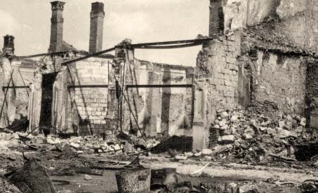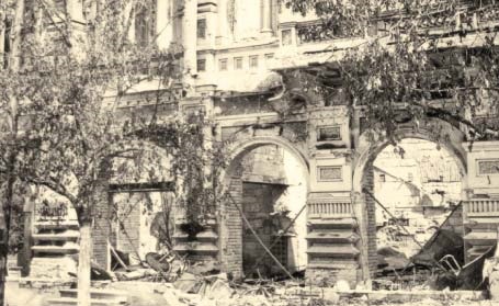 Magaziile Gării din Chişinău, pe care ruşii aflaţi în retragere le-au transformat în ruine; iulie 1941.