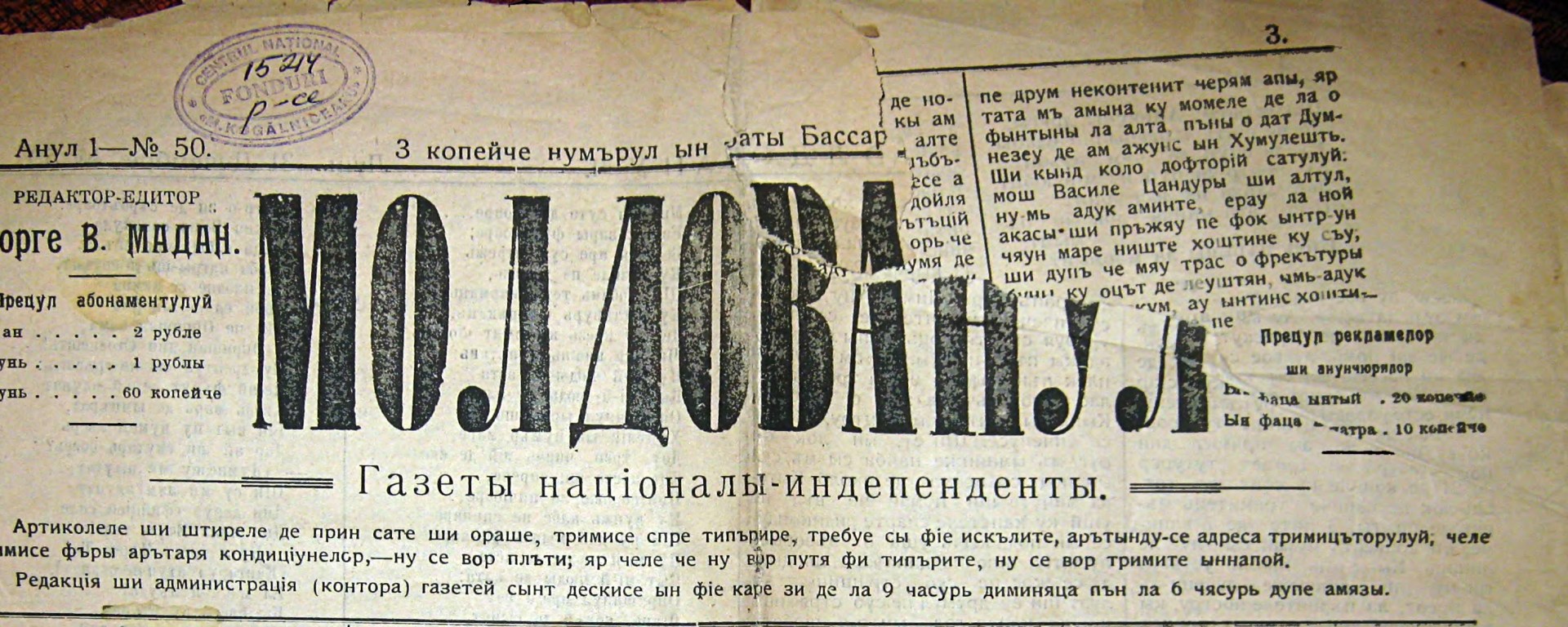 1907 — Apare la Chişinău „Moldovanul”, publicaţie săptămânală cu subtitlul “Gazetă națională independentă”, este cea de-a doua publicație periodică de limba română din Basarabia și l-a avut în calitate de redactor, editor și unic colaborator permanent pe Gh.V. Madan.