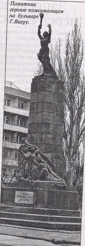 В Кишинёве стоят только два таких “защищённых” памятника: первый, как выше отмечалось – бюст А.С.Пушкина, и второй – памятник героям-комсомольцам на бул. Г.Виеру (авторы памятника – скульптор Л. И. Дубиновский, архитектор Ф.П.Наумов.1959г.), который был сооружен в честь молодых патриотов, погибших в борьбе за свободу Молдавии. Этот монумент был воздвигнут по инициативе и на средства от субботников и воскресников молодежи республики.