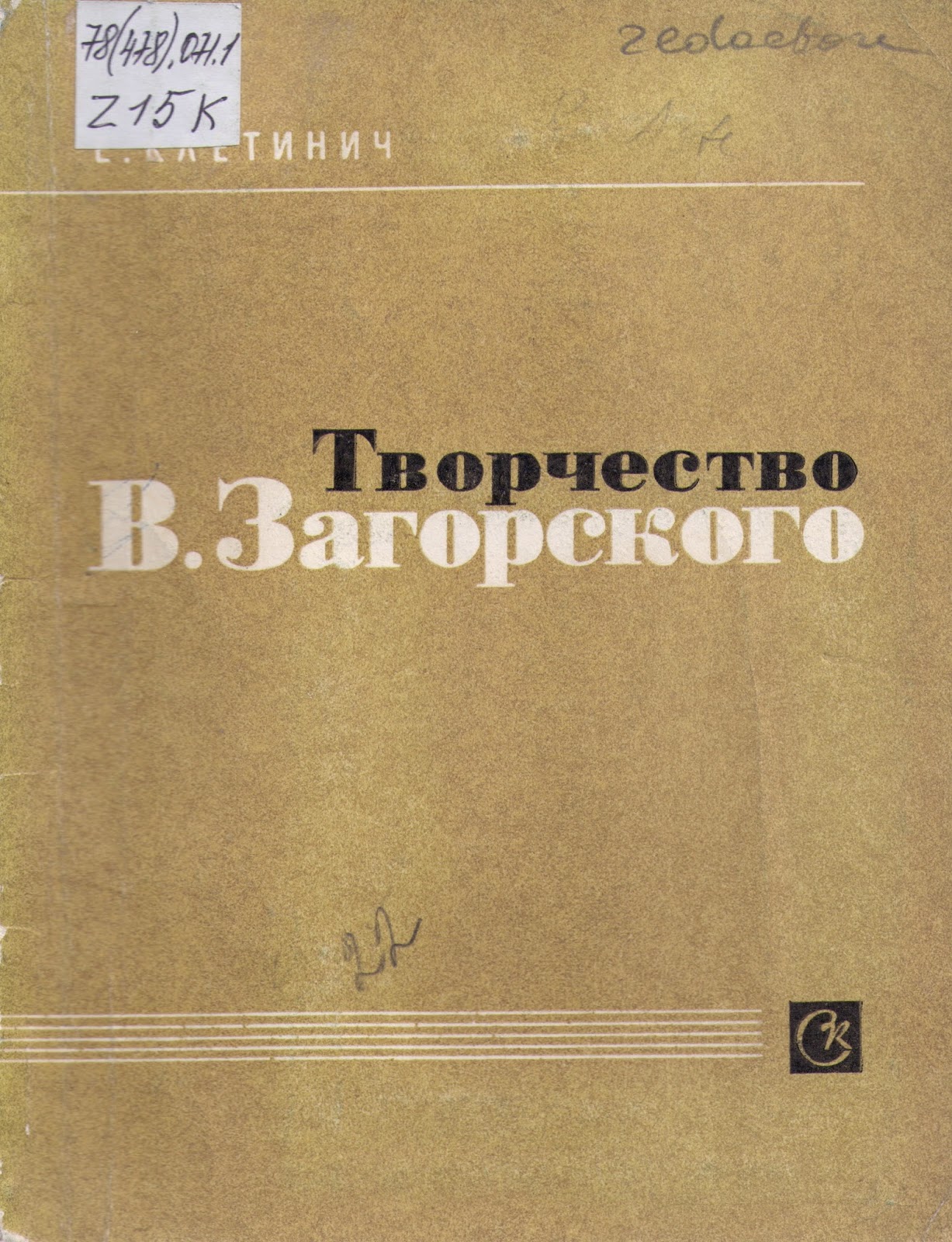 Клетинич, Евгений. Творчество В. Загорского : [Очерк жизни и творчества] / Евгений Клетинич. – М. : Советский Композитор, 1976. – 120 с.