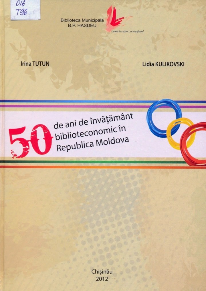 50 de ani de învățământ biblioteconomic în Republica Moldova : studiu bibliografic / Irina Tutun, Lidia Kulikovski ; red. bibliogr. Natalia Goian ; red. şt. Nelly Ţurcan ; BM “B.P.Hasdeu” ; Catedra de Biblioteconomie şi Asistenţă Inform., Fac. de Jurnalism şi Ştiinţe ale Comunicării, USM . – Chişinău : s.n., 2012 . –230 p. – ISBN 978-9975-4432-1-0.