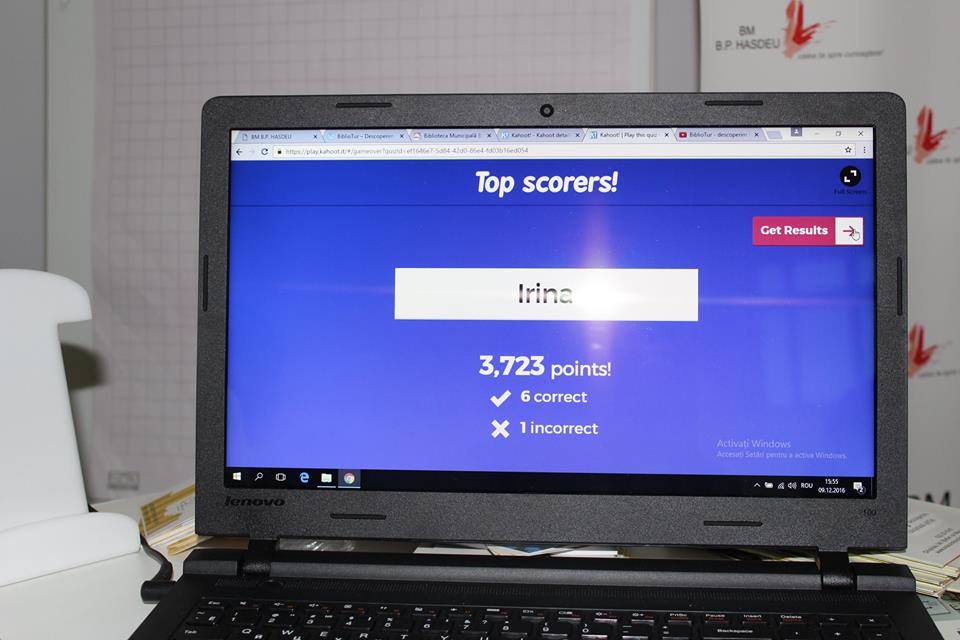 Vizitatorii standului nostru au aflat despre acest serviciu din videomaterialul “BiblioTur – descoperim Chişinăul altfel”, materialele promoţionale (flyer, semne de carte, calendar, carte de vizită etc. precum şi imagini despre tururile deja desfăşurate) şi din discuția cu bibliotecarii-ghizi. Pentru vizitatori a fost elaborat şi propus un joc interactiv (quiz Kahoot) “Cât de bine cunoașteți Chişinăul”, participanţii au servit bomboane “Chişinăul de seara” şi “Chişinău”. Toată ziua a fost plină de întrebări – serviciul nostru a prezentat un interes, a fost o surpriză, a excitat admiraţie şi dorinţa de a cunoaşte Chişinăului.