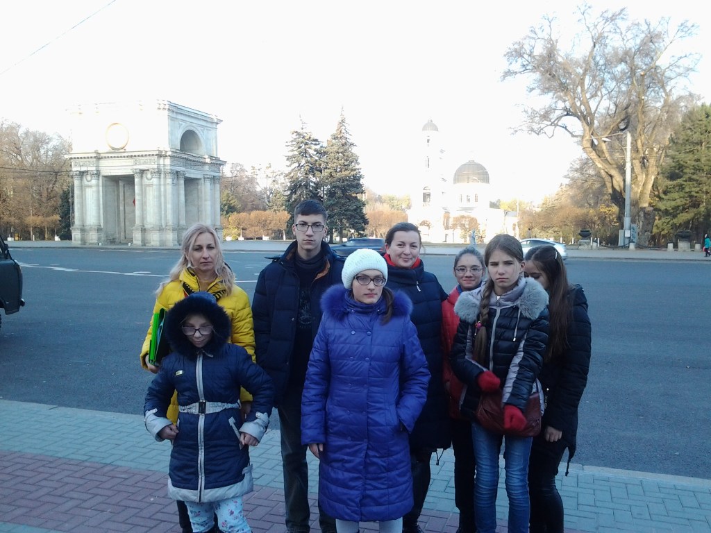 Экскурсия началась у главного памятника города и страны – памятника Штефану чел Маре, ребята с интересом слушали про историю создания скульптуры, про её автора, про его частые перемещения. Находясь в самом центре города, нельзя было не сказать о площади Великого Национального собрания, о том как назвалась она раньше и какие события на ней происходили, что было на месте Дома правительства и почему Триумфальная арка называется Святые Ворота. Ребят впечатлила история и еще больше фотографии, каким красивым зданием была нынешняя Муниципальная библиотека, «визитная карточка» города в 19 нач. 20 вв.